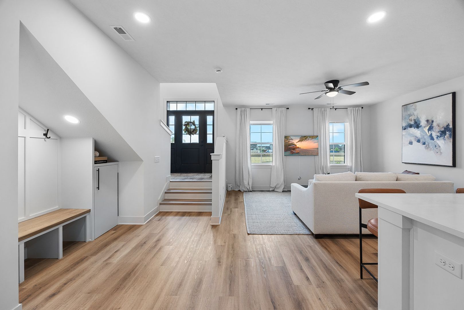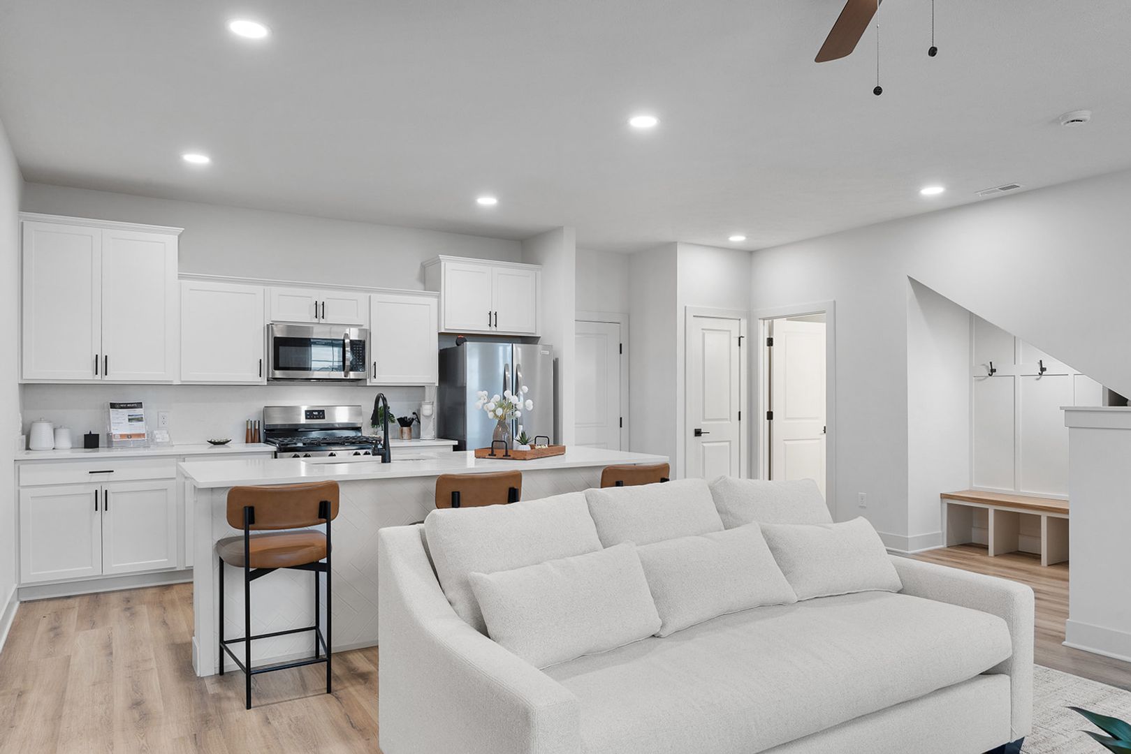 Welcome to West Heights Townhomes, your ideal haven for modern living. Our thoughtfully designed three-bedroom, two and half-bathroom dual-level townhomes offer the perfect blend of style, function, and ease. Enjoy the luxury of an attached two-car garage, ensuring both convenience and security. Greet guests on your private front porch entrance, a charming feature that adds a touch of personal flair. Inside, you’ll find custom under-the-stairs storage and a cozy seating area, perfect for maximizing space and comfort. The contemporary kitchen boasts sleek stainless steel appliances, making meal preparation a pleasure. Plus, with a full-size washer and dryer included, laundry day is a breeze.