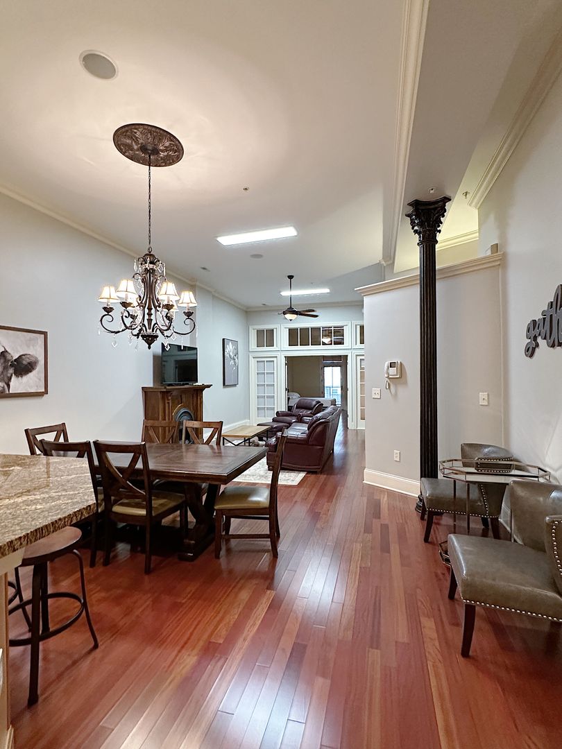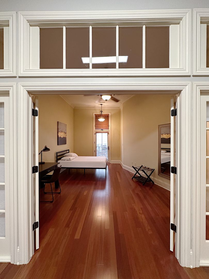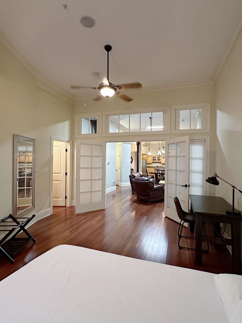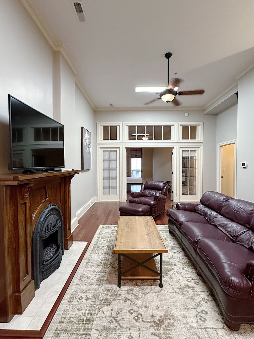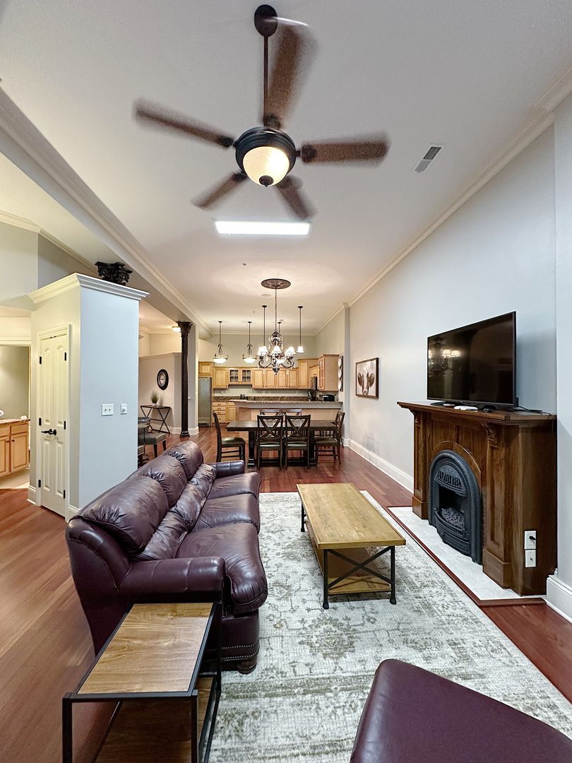 Welcome to the City Street Lofts! Located in the heart of Downtown Lafayette, this fully furnished 2-bedroom, 2-bathroom condo offers the perfect blend of historic charm and modern convenience. With stunning architectural details like grand pillars, elegant chandeliers, and French doors leading to the second bedroom, you'll fall in love with the character of this space. At the same time, you'll enjoy modern upgrades such as stainless steel appliances, a newly renovated en-suite bathroom, and a dedicated laundry room with an in-unit washer and dryer.